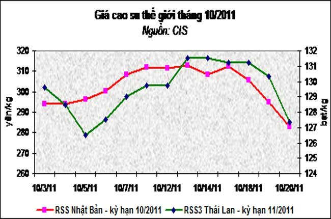 Giá cao su có xu hướng tăng nhanh vào cuối tháng 10 do nguồn cung khan hiếm, chủ yếu là do lũ lụt tại Thái Lan – nước sản xuất cao su hàng đầu thế giới. Các trận lũ tồi tệ trong vòng nửa thế kỷ qua đang đe dọa gây ngập lụt đất nước này, nguồn cung cao su chắc chắn bị ảnh hưởng.